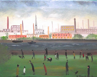 "Riverside Walk after Lowry " Evocative Original Oil Painting by John Goodlad